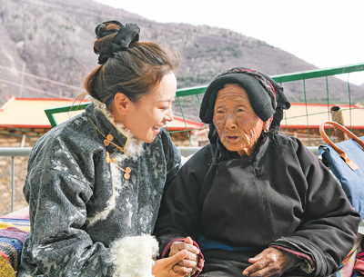 近日,全國(guó)人大代表、四川省馬爾康市老年養(yǎng)護(hù)院院長(zhǎng)格西王姆(左)走訪鄉(xiāng)村,傾聽(tīng)老人心聲。