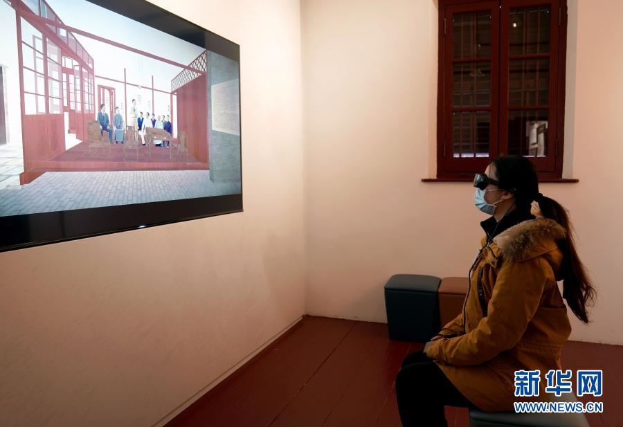 1月18日,參觀者通過VR設(shè)備了解進(jìn)步青年們在舊址內(nèi)活動情況。新華社記者 劉穎 攝