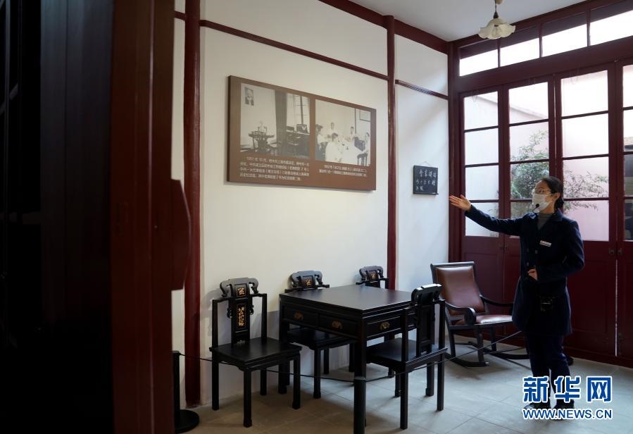 1月18日,在“中國共產(chǎn)黨發(fā)起組成立地”和“《新青年》編輯部舊址”內(nèi),講解員在講解。新華社記者 劉穎 攝