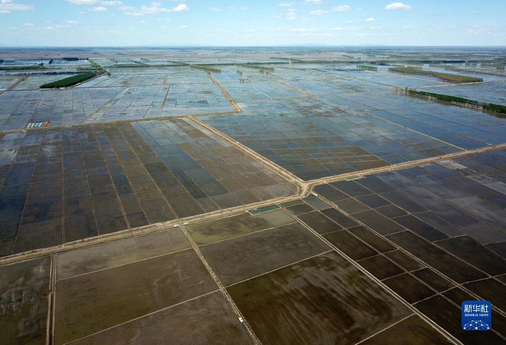 這是5月18日拍攝的北大荒集團(tuán)七星農(nóng)場(chǎng)有限公司的稻田(無人機(jī)照片)。新華社記者 王建威 攝